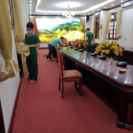Văn phòng công ty sử dụng thảm cuộn màu đỏ hoa văn chấm bi